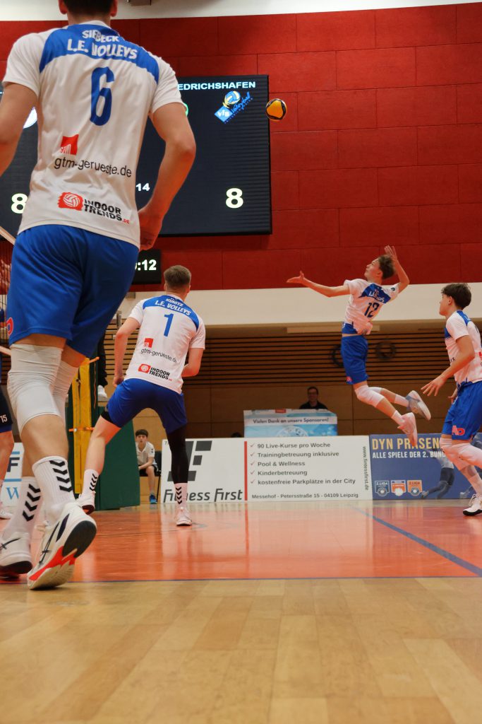Zum entscheidenden Faktor wurde eine beeindruckende Aufschlagserie von Kylian Wenke. Seine Services leiteten die Wende endgültig ein – selbst eine Auszeit von Leipzigs Trainer Pretscheck konnte den Lauf nicht stoppen. Der Zuspieler der YoungStars setzte ein Ass nach dem anderen, Leipzig bekam keinen Zugriff mehr auf das Spiel. Auch personelle Wechsel brachten keine Stabilität zurück. Nach insgesamt neun druckvollen Aufschlägen landete schließlich einer im Netz – da fehlte beim Stand von 15:21 aus Leipziger Sicht allerdings nicht mehr viel und der Satz ging mit 15:25 hochverdient an die Jungs vom Bodensee.